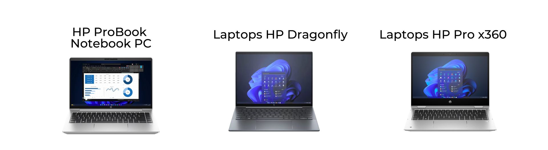 - HP ProBook Notebook PC: combina rendimiento confiable, diseño moderno y herramientas de seguridad esenciales, pensada para pequeñas y medianas empresas. Con opciones de procesadores potentes, batería de larga duración y facilidad de gestión.